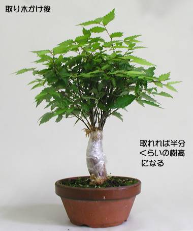 そこで、取り木して枝分かれまでを3〜4cmくらいにすると完成樹高は12〜13cmくらいになります。